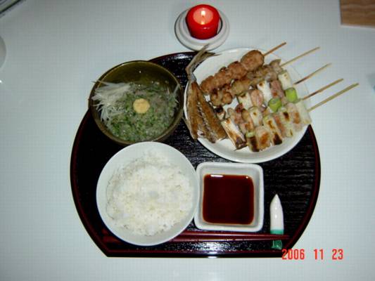 鶏モモ肉が半分余っていたので、ネギマ3本と、つくねと、鶏皮一本。